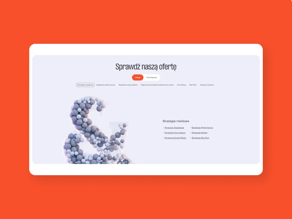 - Kluczowym znakiem stał się Ampersand (&), który symbolizuje łączenie różnych światów marketingowych (Performance & Branding) i kompleksowość oferty.