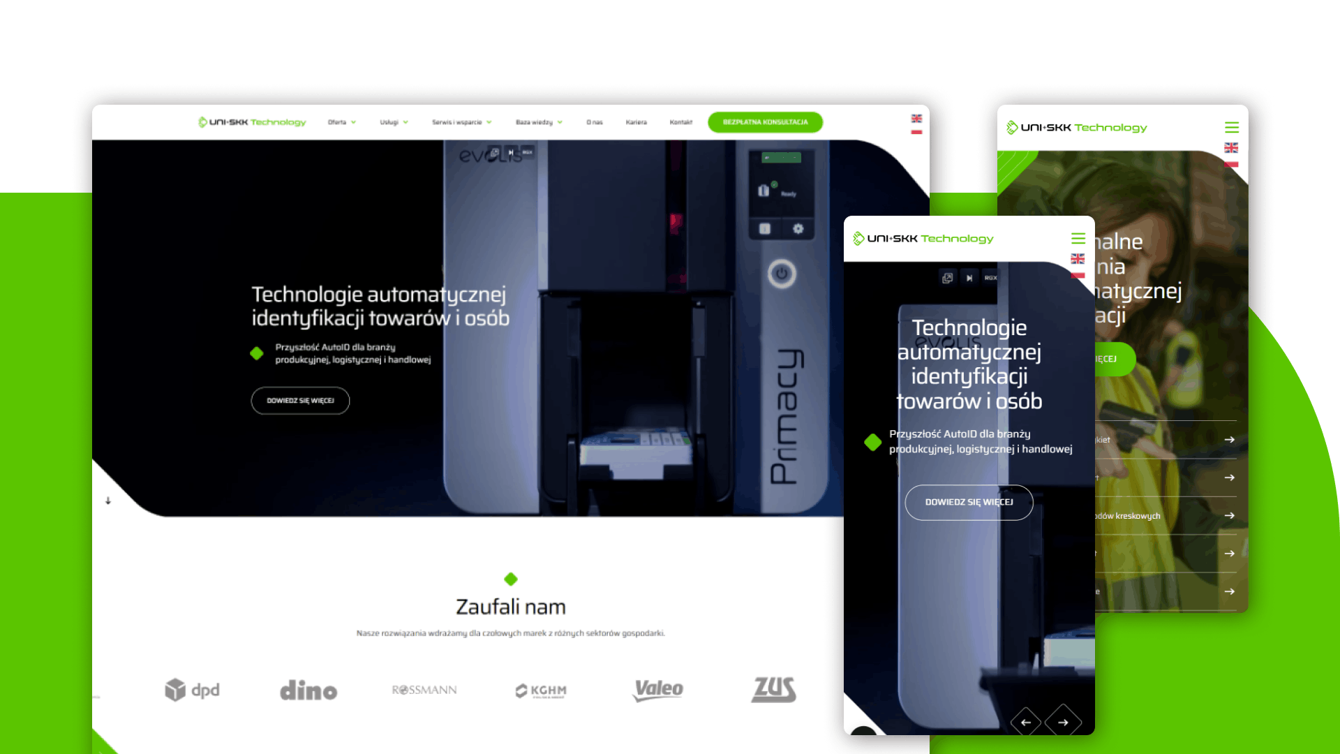 - UNI+SKK Technology (dostarcza i wdraża systemy AutoID do identyfikacji osób oraz produktów),