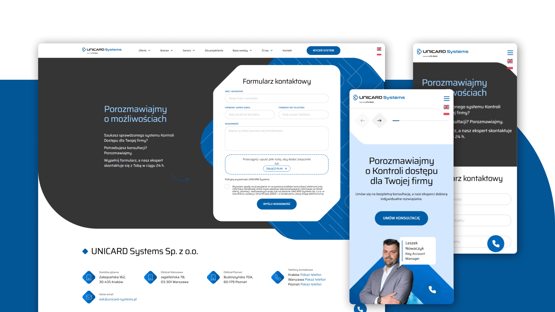 Projektowanie szablonu, który musi być adaptowalny dla różnych marek (nawet jeśli są tak spójne brandingowo, jak w tym przypadku), wymaga szczególnego podejścia. Współpraca z UNI+SKK obrazuje, jak ważne jest: