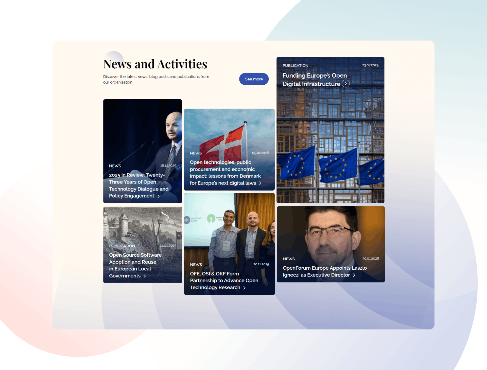 Working with Wise People on our brand refresh and website redesign has been an outstanding experience for OpenForum Europe. Their thoughtful approach helped us strengthen our professional image, unify our communications, and create a digital presence that reflects our role in Europe’s digital policy ecosystem.